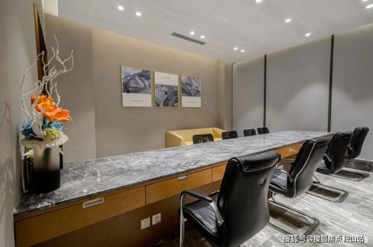 办公区域内,互动性极佳,坐定办公席,破除了传统封闭性的困扰,使轻松悠然氛围贯穿室内每个角落。