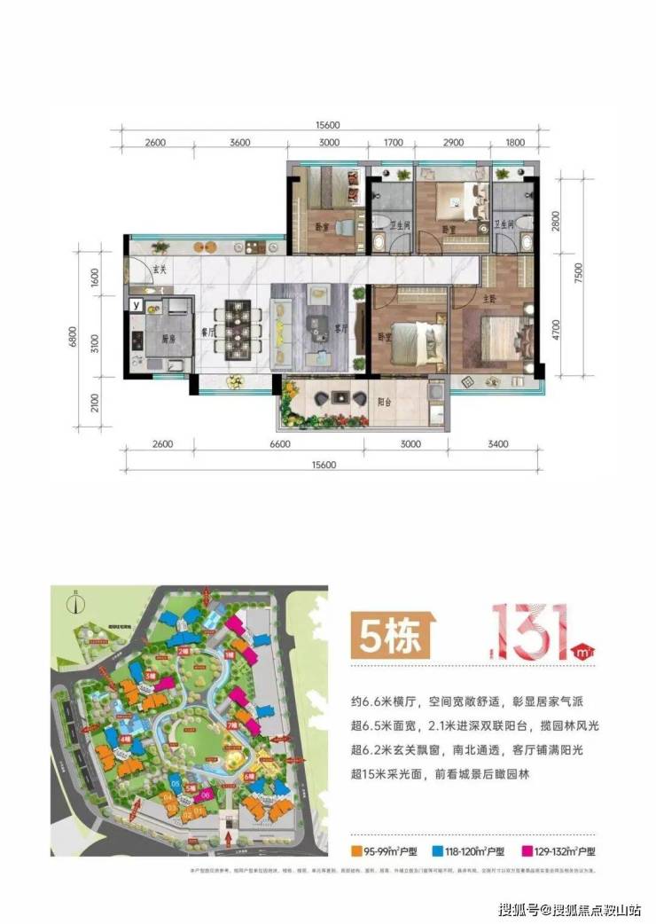 目前主要在售5栋和6栋,在售户型主要有两个,98平3房2厅2卫以及118平4房两厅两卫的户型,130平横厅3房两厅两卫,