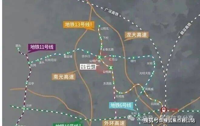深业云筑,位于深圳市光明区公明街道马田街道石家社区,地处光明科学城大科学装置区,紧邻地铁6号线公明广场站(1.1公里)及在建13号线公明南站(约700米),未来可直达南山科技园、后海总部基地;周边龙大、南光高速无缝衔接福田、南山,交通便捷。