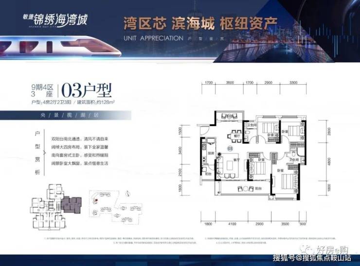 项目目前已经开放展示中心及示范单位,主推九期四区建面约91-128㎡3-4房住宅单位,具体户型如下: