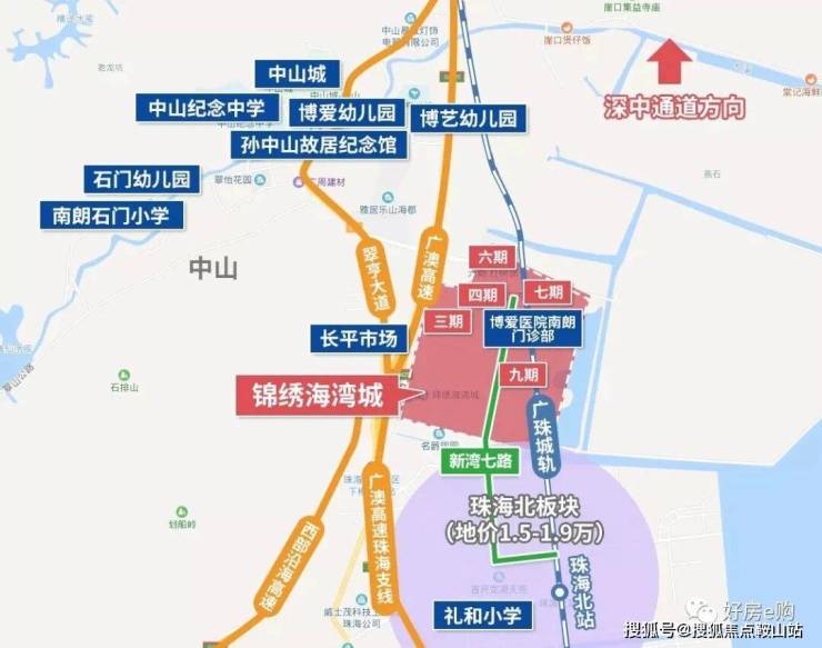 而锦绣海湾城选址之妙,还在于向南,经新湾七路(通车在即),至珠海唐家不过500米,最重要是,珠海刚官宣,接入唐家的深珠通道将在5年内动工。