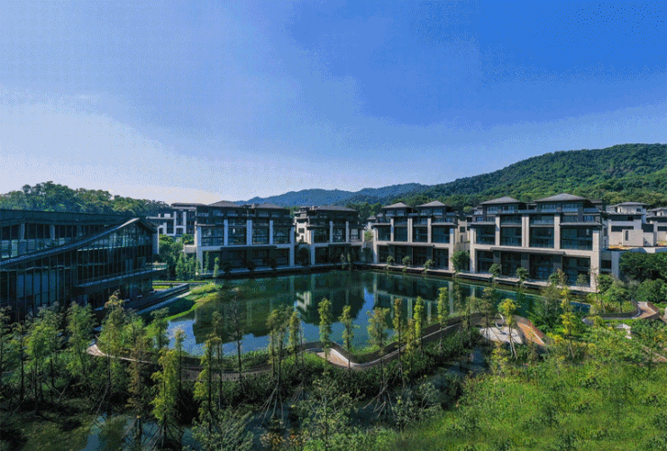 项目处于广州城市 CBD 中轴北段正中心位置,云山东麓生态宜居新城区,项目三面环山、一面环湖,出则繁华,入则宁静。最大限度地满足人与自然和谐共生,取东方意境,以院之形态,树立中国顶级生活方式之范本。