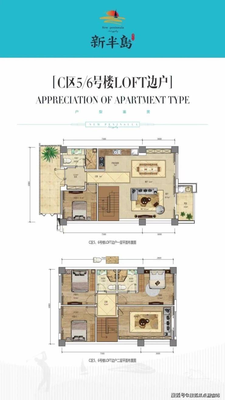 C区5、6号楼LOFT边户户型图:建筑面积91.83-100.8平米,使用面积约180平米,赠送花园60-130平。总价:300-400万