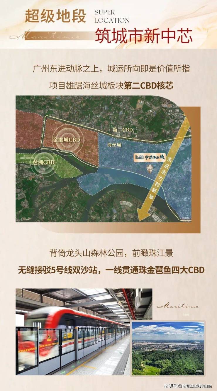 中建海丝城作为双沙村旧改首期商品房由中建八局与知识城集团联合开发,总投资 289.3 亿元、总建面约 240 万方,占位黄埔海丝城板块核心,紧邻地铁 5 号线双沙站(步行 50 米)与 13 号线双岗站(步行 8 分钟),形成 “双地铁 + 双 CBD” 通勤格局,2 站达鱼珠 CBD、5 站到金融城、10 站直通珠江新城,日均通勤时间控制在 30 分钟内,精准匹配天河上班族需求。
