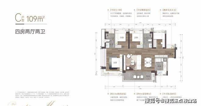 109㎡横厅四房(832万起):6米大横厅+南北通透,公卫三段式分离,空间利用率拉满。