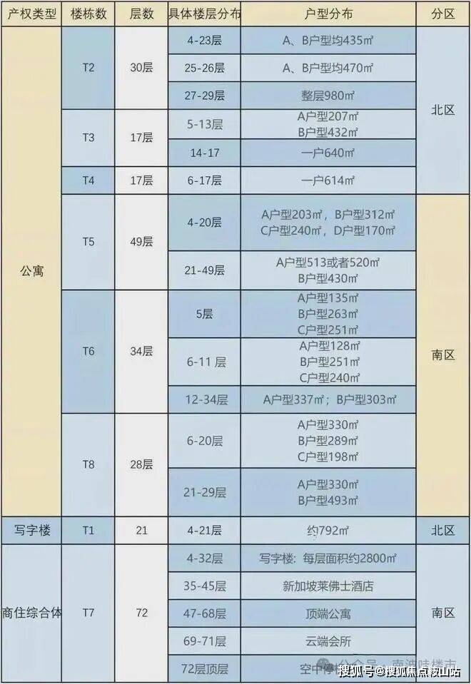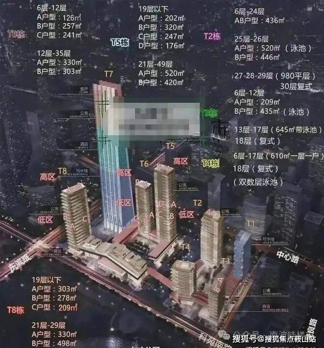 南区分为:T5、T6、T8公寓,T7为环球商务中心。