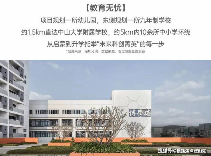 • 【教育无忧】:项目规划一所幼儿园,东侧规划一所九年制学校,约1.5km直达中山大学附属学校,约5km内10余所优质中小学环绕,从启蒙到升学托举“未来科创菁英”的每一步。