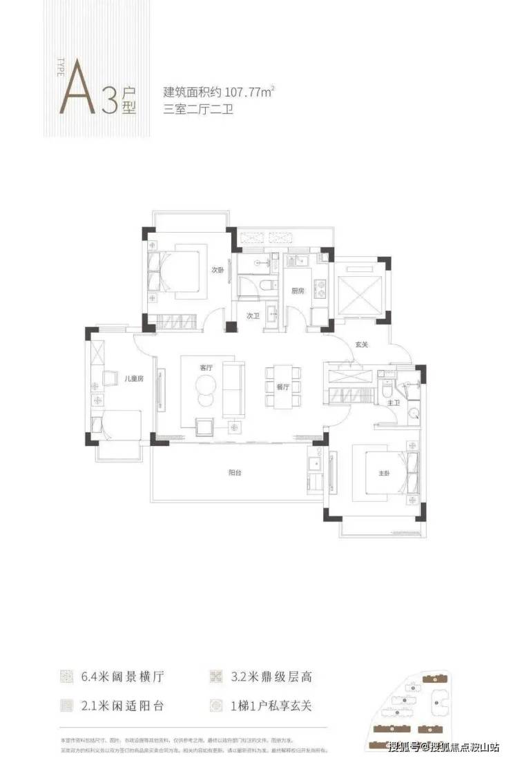 建面约107㎡三房两厅两卫