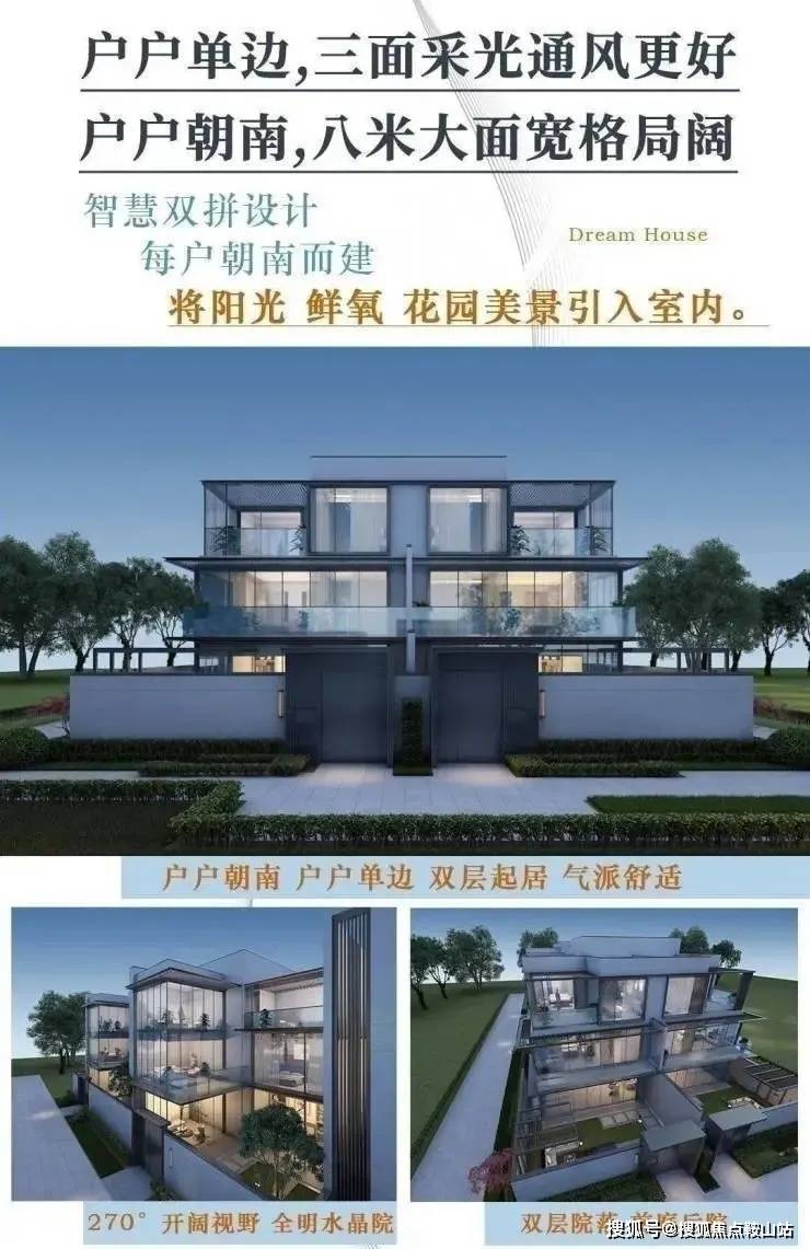 现代别墅——【水晶西江院】:户型设计以双拼为主,户户单边,外墙采用大面积双层中空玻璃窗设计,多面采光,形似优雅的水晶,采光及视野俱佳,多功能空间,高拓展+高实用率。