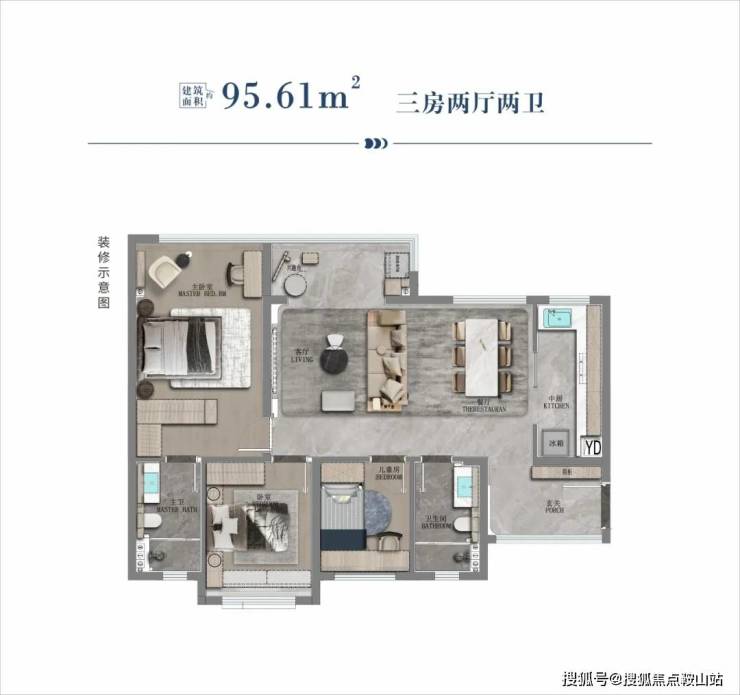 95.61㎡ 三房两厅两卫