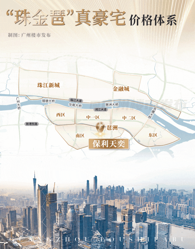 1,地段优越:位于琶洲南区,一涌之隔就是琶洲最早发展的中区,能完美继承琶洲西区和会展区的高端客群,与珠江新城、金融城并列,构成广州顶流城市金三角。