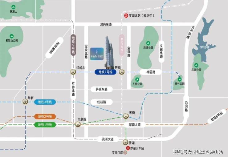 无缝接驳地铁7号线笋岗站D出口(已开通),地铁17号线笋岗站正在规划中,邻9号线红岭北站。