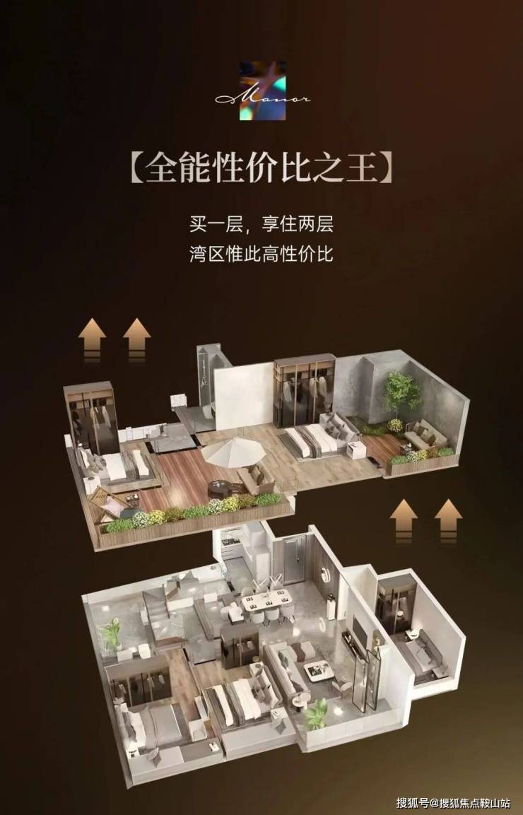 其中【全能的性价比之王】户型,买一层的总价,用两层高实用空间,享三代同堂的梦想——上下分层、动静皆宜,呈现别墅立体空间的质感,更有四房全大房的阔绰空间,一步到位满足全龄段、全周期的生活所需。