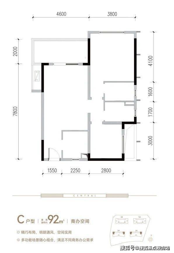 建面约76-121㎡精装商办产品