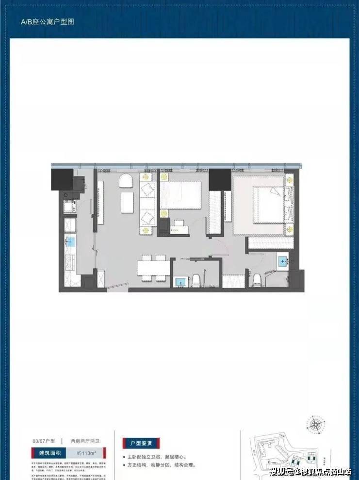 公寓113平户型两房两卫:
