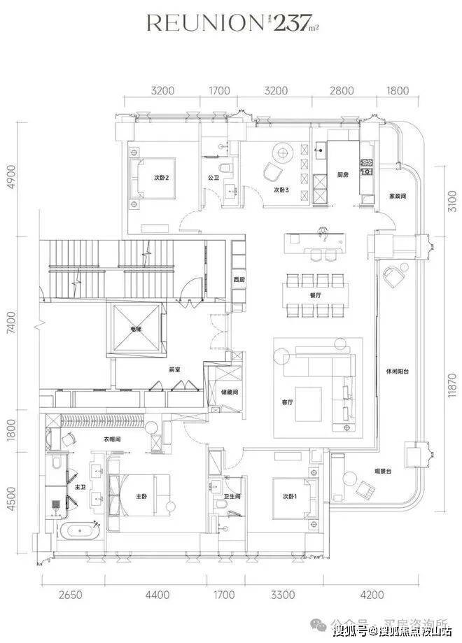 首批将推售1栋21层高的小高层,建面约197-235㎡的大平层产品,仅42套。官方户型已出炉