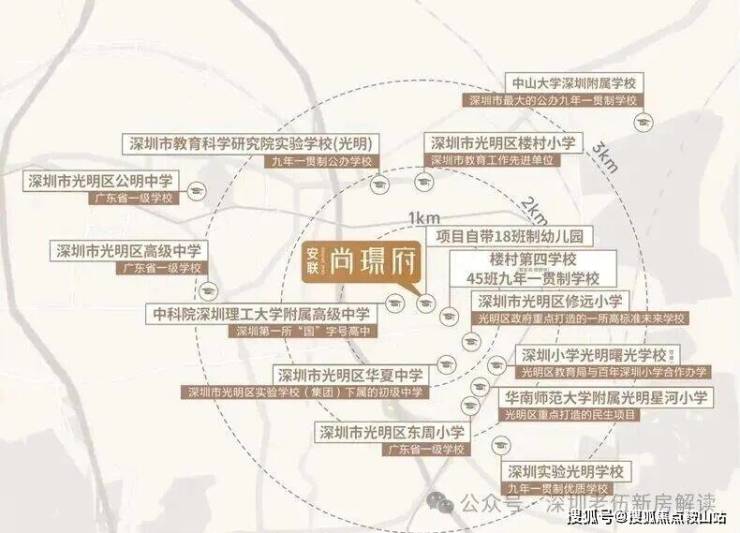 学校配套:安联尚璟府自带5500㎡18班幼儿园,可让孩子享受家门口"目送式"教育。根据2025年光明区学区划分,项目所属楼村社区对口东周小学(省一级,约1.3公里)、华南师范大学附属光明星河小学(约1.1公里)、修远小学(约500米)、深圳小学光明曙光学校(约800米),南科大荔园学校小学部(距离约1.1公里)等优质小学。初中对口华夏中学(36班公立,约1.5公里)、南科大荔园学校初中部、深圳实验光明学校初中部(约2.2公里)、光明高级中学集团(约3公里)等 。