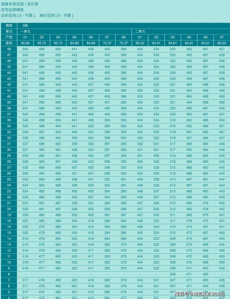 3栋1/2单元备案价格表