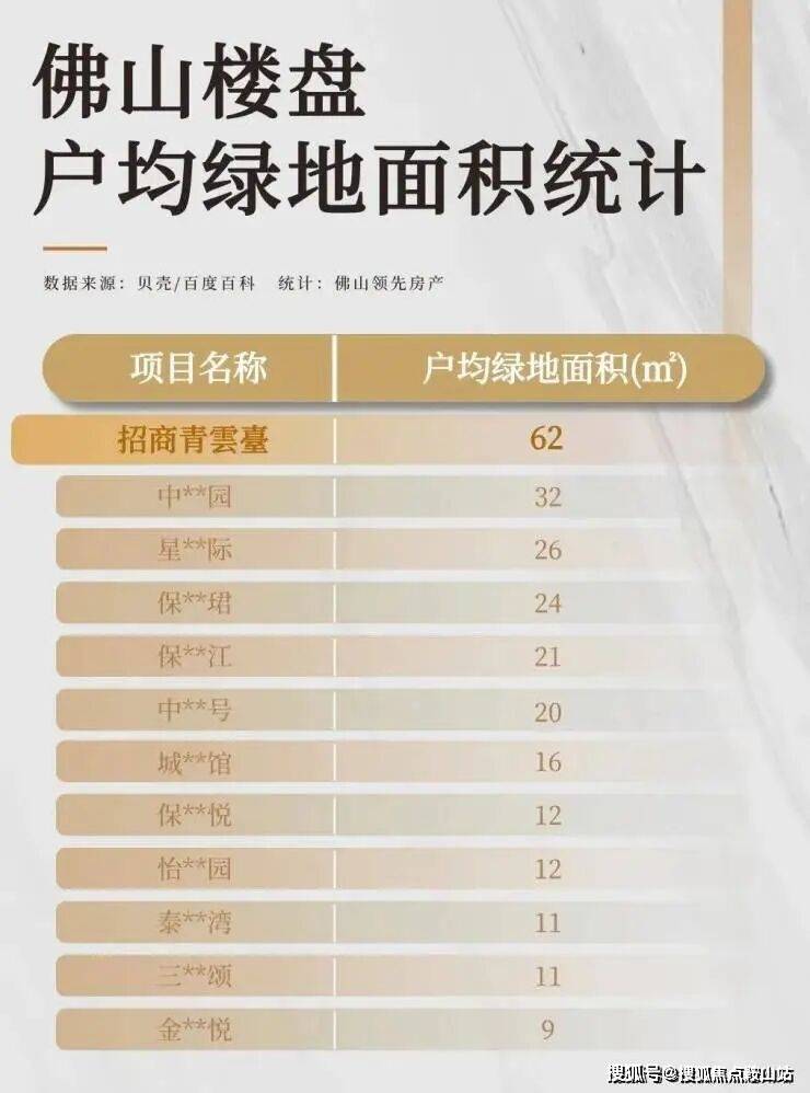 ▲佛山部分楼盘户均绿地面积统计
