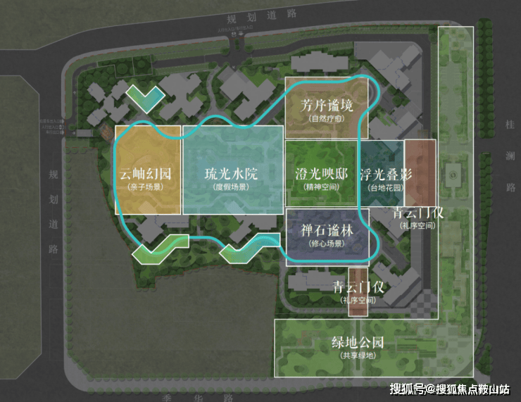 项目通过大围合式建筑布局,释放出约5.3万㎡景观大园林,以“云岫幻园、禅石谧林、澄光映邸、芳序谧境”等四大主题景观系统,融汇儿童游乐、健身社交、度假会客等多重功能,在城市中心营造出一处可游可赏的“微度假场景”。
