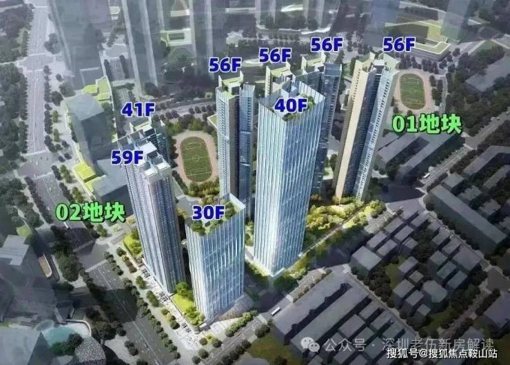 01-01地块占地约1.93万平方米,总建筑面积约23.8万平方米,容积率为8.81,绿化率为40.01%。该地块由1栋40层的办公单元和4栋56层的住宅单元,还规划有公交首末站。地块总规划980户,住宅单元设计为3梯4户、3梯5户和3梯6户,规划停车位1533个。