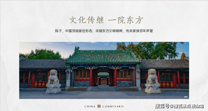 院子,不仅是中国人居的至高礼制,更是内在血脉文化的基因。在西式建筑盛行、欧风美雨侵袭的当下,时代正在呼唤一座院子,担起唤醒东方文化记忆的使命,弥补中国人文建筑精粹的缺失,让国人重拾庭院情怀。