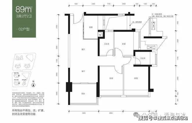 面积:约82-89㎡3房2卫