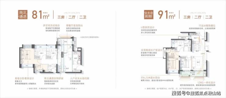 ①精聚焦青年家庭需求,联发精研定制建面约81/91㎡超能三房两卫成长空间,综合使用率高;