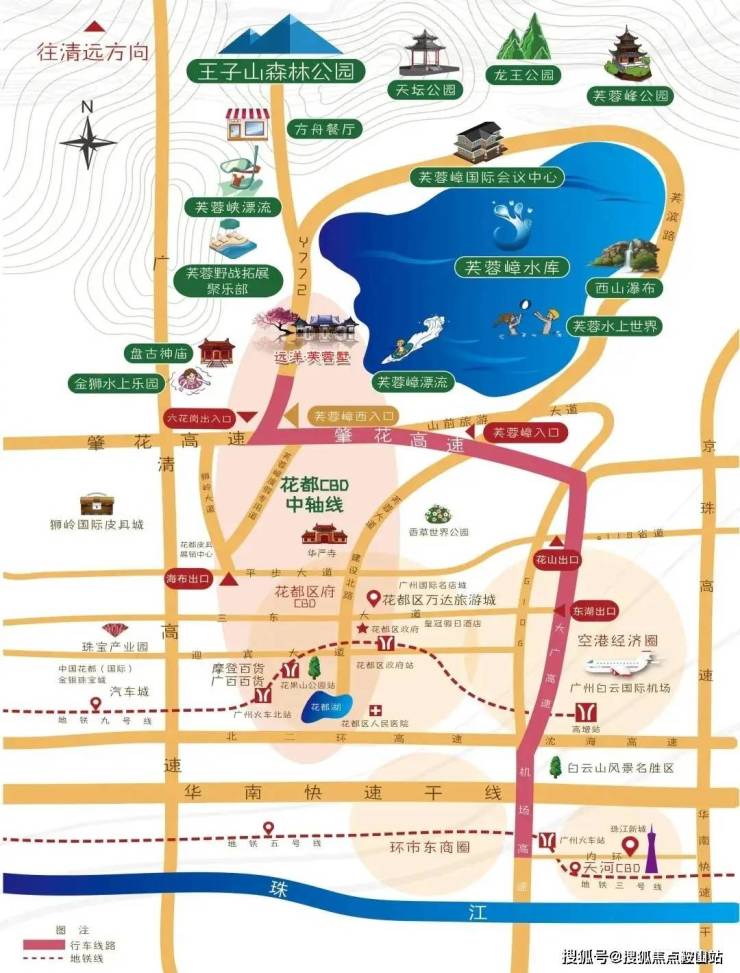 4、「高速」:5分钟上高速,肇花高速、许广高速、大广高速、机场高速等多条高速链接,约50分钟车程到珠江新城