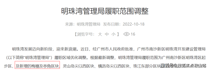 根据最新调整,明珠湾管理局履职范围为广州南沙新区明珠湾区起步区,及新增的梅糖及亭角区块、灵山岛尖以西区块、横沥岛尖以西区块、珠江东部分区块4个区块。