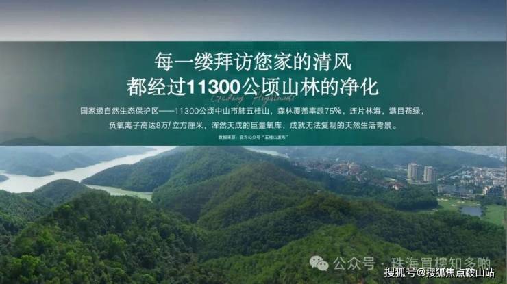 背靠约11300公顷五桂山、坐拥约36km²长江水库、国际高尔夫球场、紫马岭、华佗公园、奥斯湖公园。6大城市天然氧吧,森林覆盖率超75%,负氧离子高达8万/立方厘米,肆意享受难以复制的天然生态。