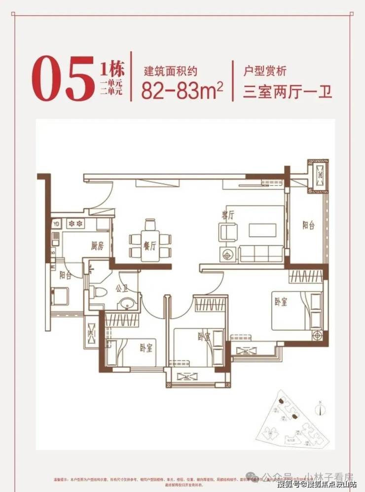 约82-83㎡三房:端头位,全采光,享稀缺山海景观。