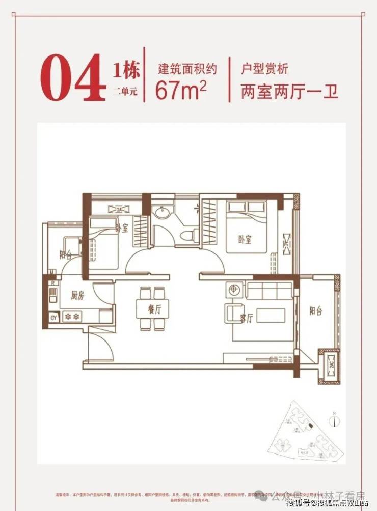 约67㎡两房:东南朝向,片区内唯一在售2房。