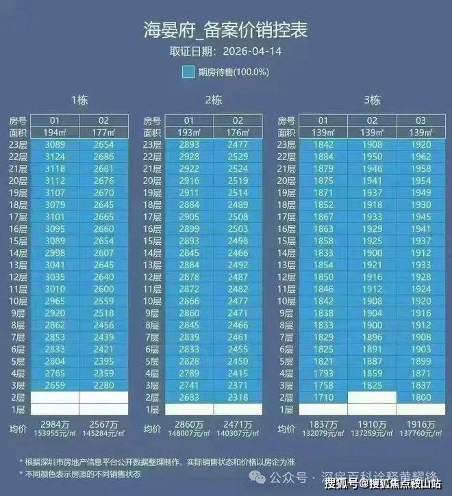 4月14日,海晏府取证,推出151套精装住宅,户型面积139/176/194㎡纯粹大宅,均价高达14.2万/㎡,单价区间12.3-16.1万/㎡,总价1710-3123万。 这个价格,堪称前海“天价”。