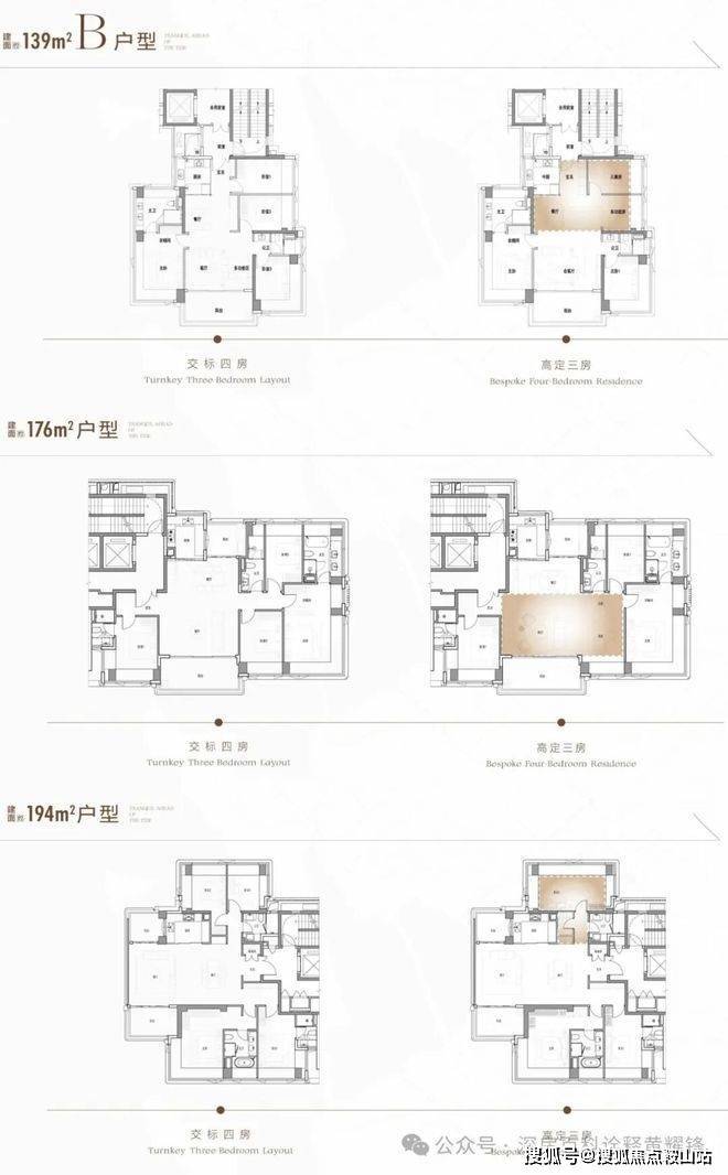139㎡户型 3.1 米层高,176/194㎡大户型3.3 米层高,远超旧规住宅 2.8 米常规层高,空间尺度感拉满;