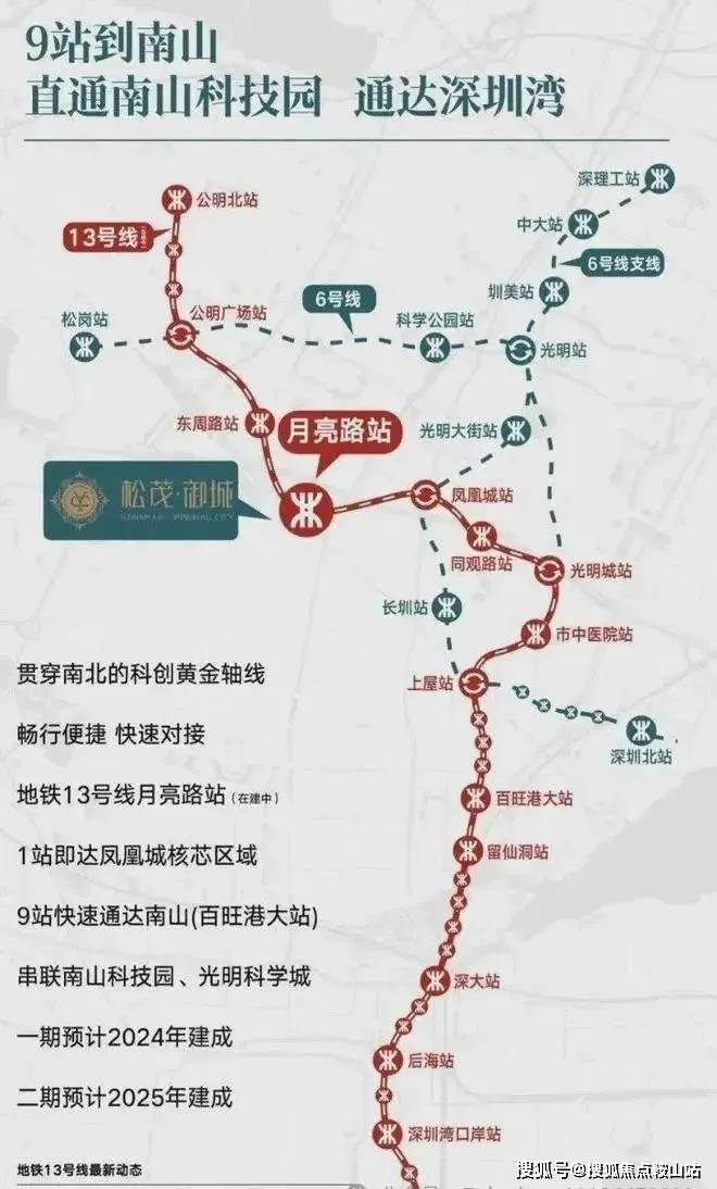 双地铁站配置:项目距离地铁13号线北延线(在建中)月亮路站直线距离约600米、东周路站直线距离约900米,未来1站即达凤凰城,9站进南山。