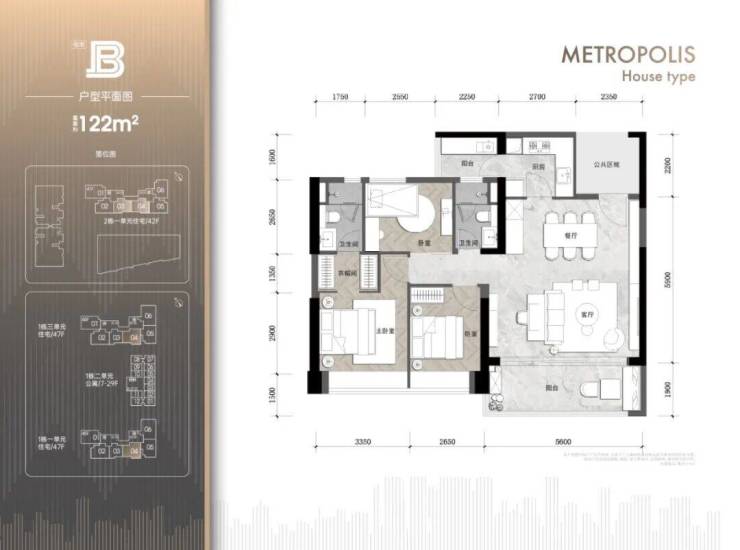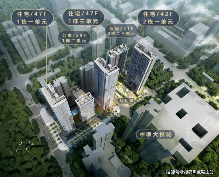 一期共3栋,包括1栋一单元47F商品房,1栋二单元29F公寓和1栋三单元回迁房;二期为2栋1单元商品房,二单元保障房和1栋幼儿园。梯户比4T6,车位1:1。
