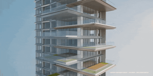 第三,每层约1.2米外飘的挑檐。挑檐如同优雅的羽翼,隔绝了楼层之间的视线交汇,让云端私密空间得以实现。