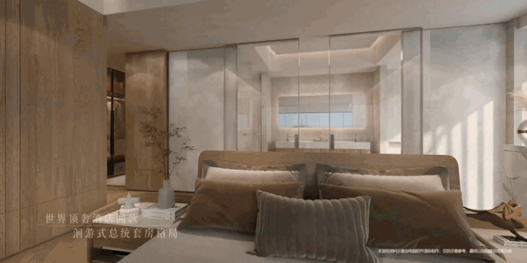 主卧空间约50㎡,多功能融汇“小家化”设计,独立衣帽间+对标星际酒店打造的奢华主卫,配合环形动线,尺度感和功能性均为顶格设计。