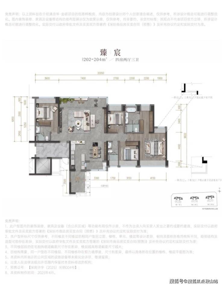 202-204㎡的户型折后单价约5.43-5.99万/㎡,折后总价约1086-1217万/套。