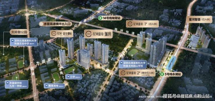 龙岗永湖红盘,星河盛境3期位于龙岗区园山街道,紧挨大运核心板块,毗邻3号线永湖站及14号线坳背站,是双地铁TOD综合体项目,项目周边交通网络发达,14号线1站直达大运枢纽、5站到罗湖、6站到福田,规划中21号线、31号线将进一步强化与坂田、南山及机场东的快速连接,形成覆盖全城的“五纵四横”路网结构(水官高速、龙岗大道等),畅通深圳全城。