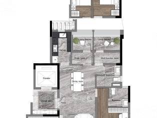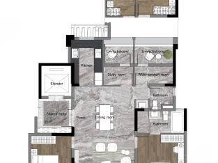 200㎡四房三卫:楼王户型,约 14 米 IMAX 巨幕阳台,直面湿地河景;双主卧套房,7 米超大会客厅,匹配高净值家庭。