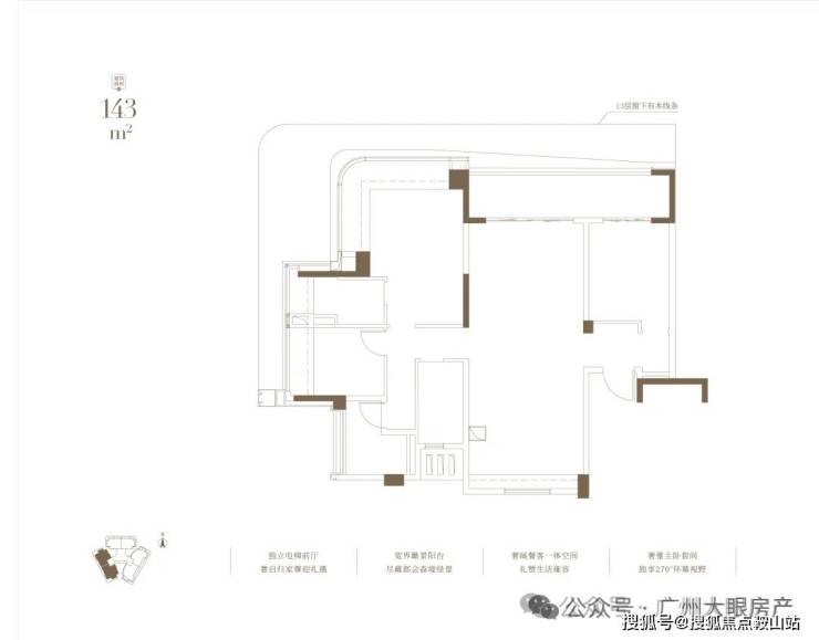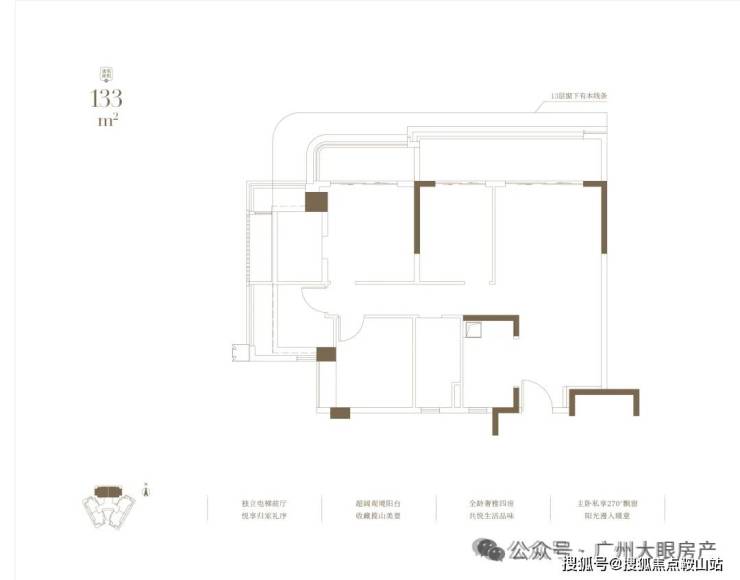 其中,约133㎡北侧看白云山,约143㎡西南向,约177㎡东南向。