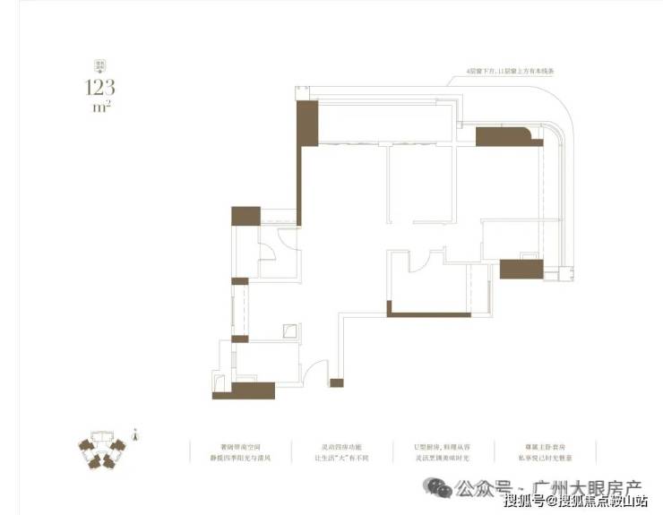 低区4-11层,约64户,主推建面约108-123㎡三四房,精准定位刚需改善群体;