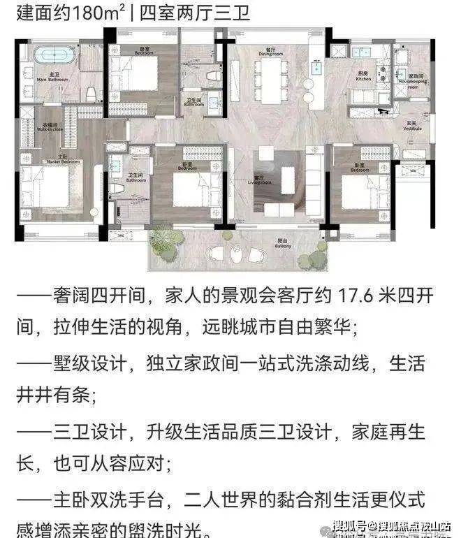 户型建面:约129-180㎡标准四房