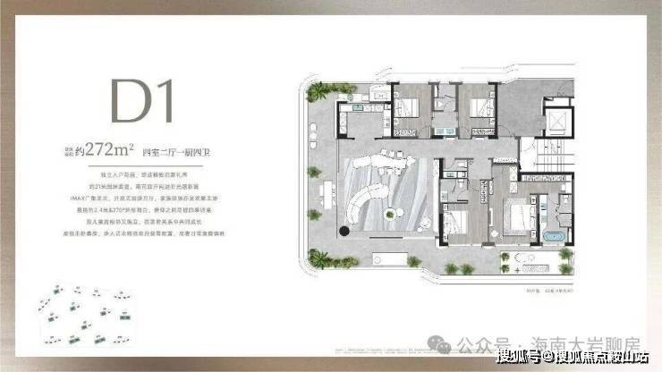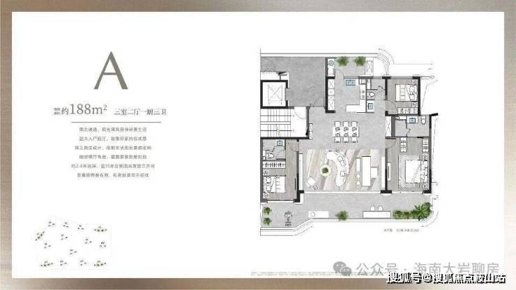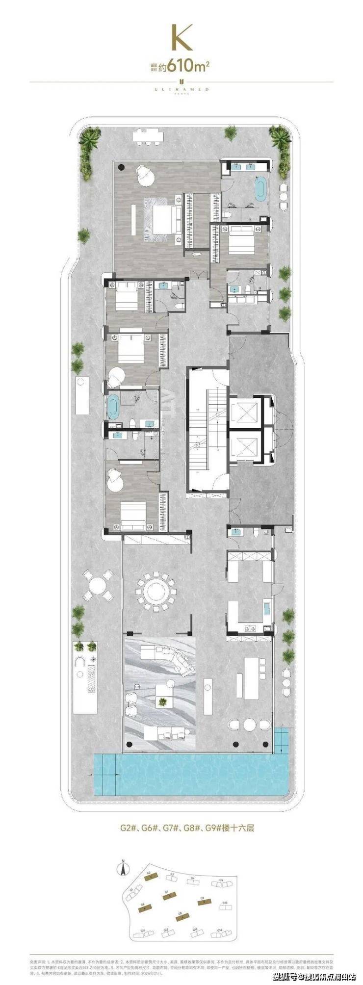 项目户型面积从约188-610㎡,全部为大平层设计,无入门级产品,确保了圈层的纯粹性和居住的舒适度。