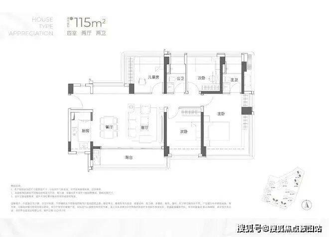 设计的是竖厅双龙抱珠格局,客厅3.5米开间,LDKB一体化,4个卧室分别做到了3.7米/3.4米/2.8米/2.6米的宽度,主卧加2个次卧270°全景飘窗,客厅连接次卧出6.1米长的大阳台,U型厨房,得房率约95-97%(包含赠送),西南或东南朝向。