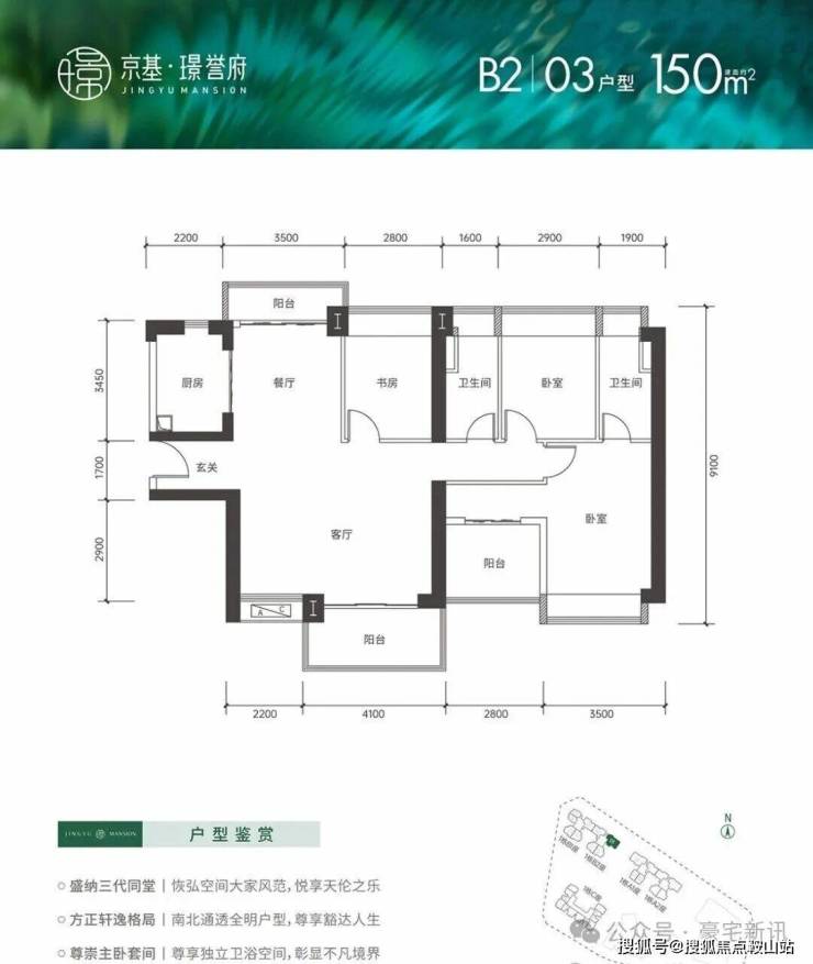 150平米四房,折后约900-914万(11楼以下部分)