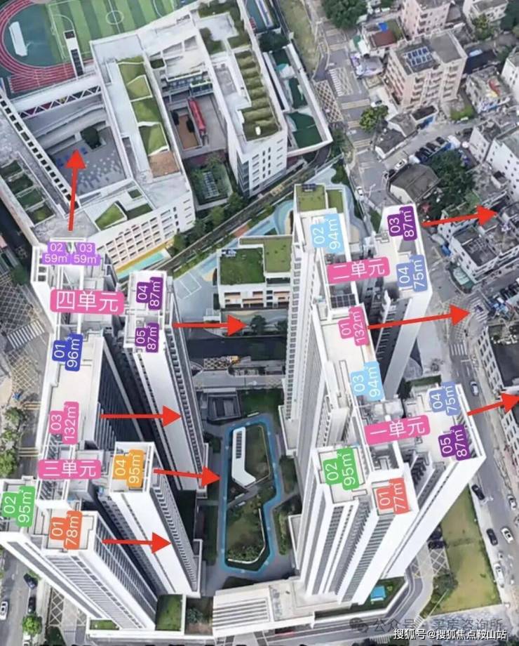 按规划来看,项目建筑面积约7.92万㎡,由3栋建筑组成,2栋住宅和1栋酒店,规划有567户,主推户型为59-134㎡2-4房,用地面积9254.86㎡,建面约6.8万㎡,涵盖2栋住宅,地下室2层、地上32层,共4个单元,自带1所约3200㎡的幼儿园。1栋1/4单元是2梯5户,1栋2/3单元是2梯4户,地下2层,停车位358个,停车位占比约1:0.69。
