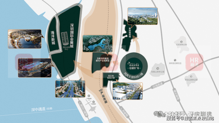 『作为凤凰山麓综合体项目,以国际前沿的规划,打造高端商务办公、国际公寓、旗舰商业、奢尚酒店、高配置学校于一体的森尚超体,独占人文与生态价值鳌头,以封面超体之姿,造就湾区都会坐标。』